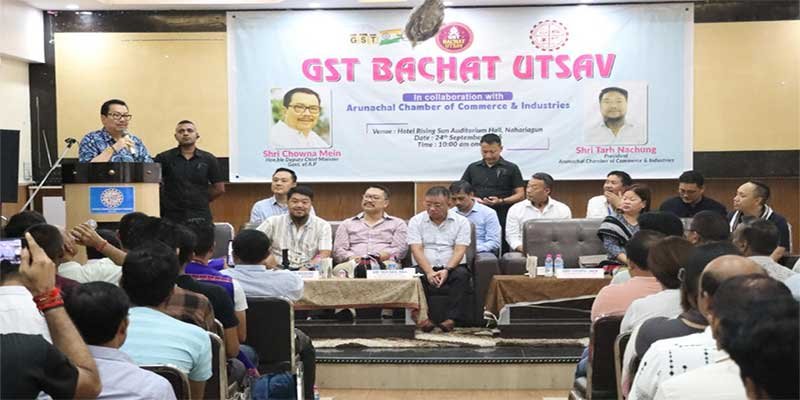 GST-BACHAT-UTASAVNAHARLAGUN– Deputy Chief Minister of Arunachal Pradesh, Chowna Mein, actively participated in a GST awareness campaign organized by the Arunachal Chamber of Commerce & Industries (ACC&I) at Naharlagun today.