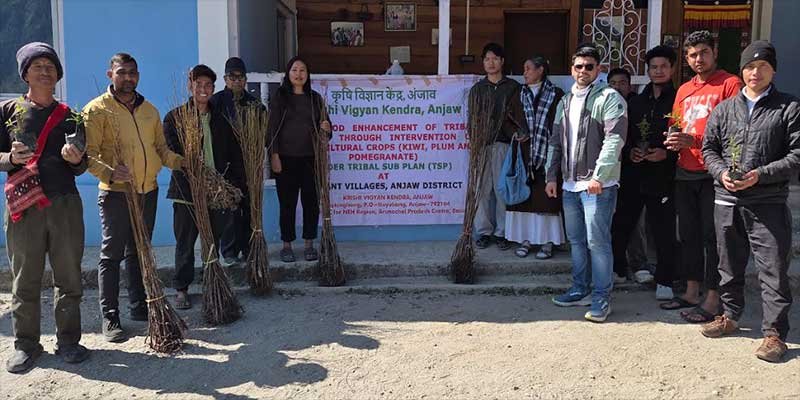 KVK-Anjaw-Distributes-Fruit-Saplings-in-Vibrant-VillageKVK Anjaw distributed kiwi, plum and pomegranate saplings to farmers under the Tribal Sub-Plan project to promote scientific horticulture and rural livelihoods.