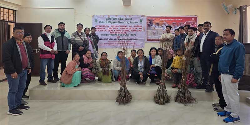 KVK-Anjaw-Distributes-Kiwi,-Plum-Saplings-Under-TSPKVK Anjaw distributed kiwi and plum saplings to farmers under the Tribal Sub-Plan, promoting scientific horticulture for livelihood improvement.