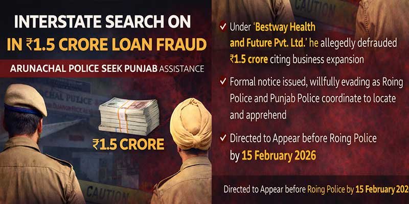 Roing-Police-launched-Inter-State-Search-in-Rs1.5-Crore-Loan-FraudArunachal Police launch inter-state operation to trace accused in a ₹1.5 crore loan fraud case, seeking Punjab Police assistance to secure presence of the ..