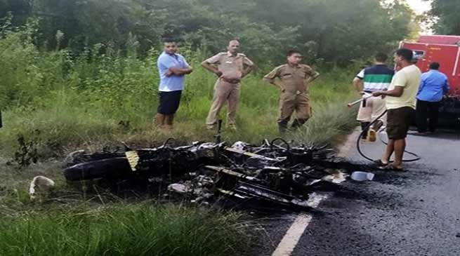 However, the enraged mob from victim side burnt 4 (four) Motorbikes at the mishap site. The situation was brought under control when DW Thungon SP Lohit immediately intervened and consoled the move to avoid taking law in their hand. An FIR was also lodged by the Riders whose motor vehicles were burnt down.